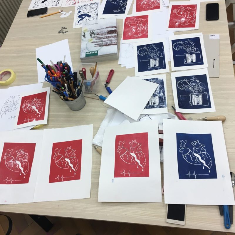 Drugo! Nakon radionice, od 20 h, druženje se nastavlja na izložbi pod naslovom „Sama ću si slomit srce“ naše voditeljice Maše, naših polaznika radionica ilustracije, stop animacije i radionice linoreza (od maloprije)! Radi se o izložbi satiričnih ilustracija Maše Barišić, proizašlih kao završni rad za Ženske studije 2018. godine. Parola „Sama ću si slomit srce“ otvara mnoštvo prostora za kritičko promišljanje o svijetu u kojem živimo, kao i načina na koji ga možemo promijeniti u svijet kakav bismo željeli. Osim njenih, na izložbi ćete uživati i u radovima svih naših super vrijednih i talentiranih polaznika koji imaju puno toga za pokazati.