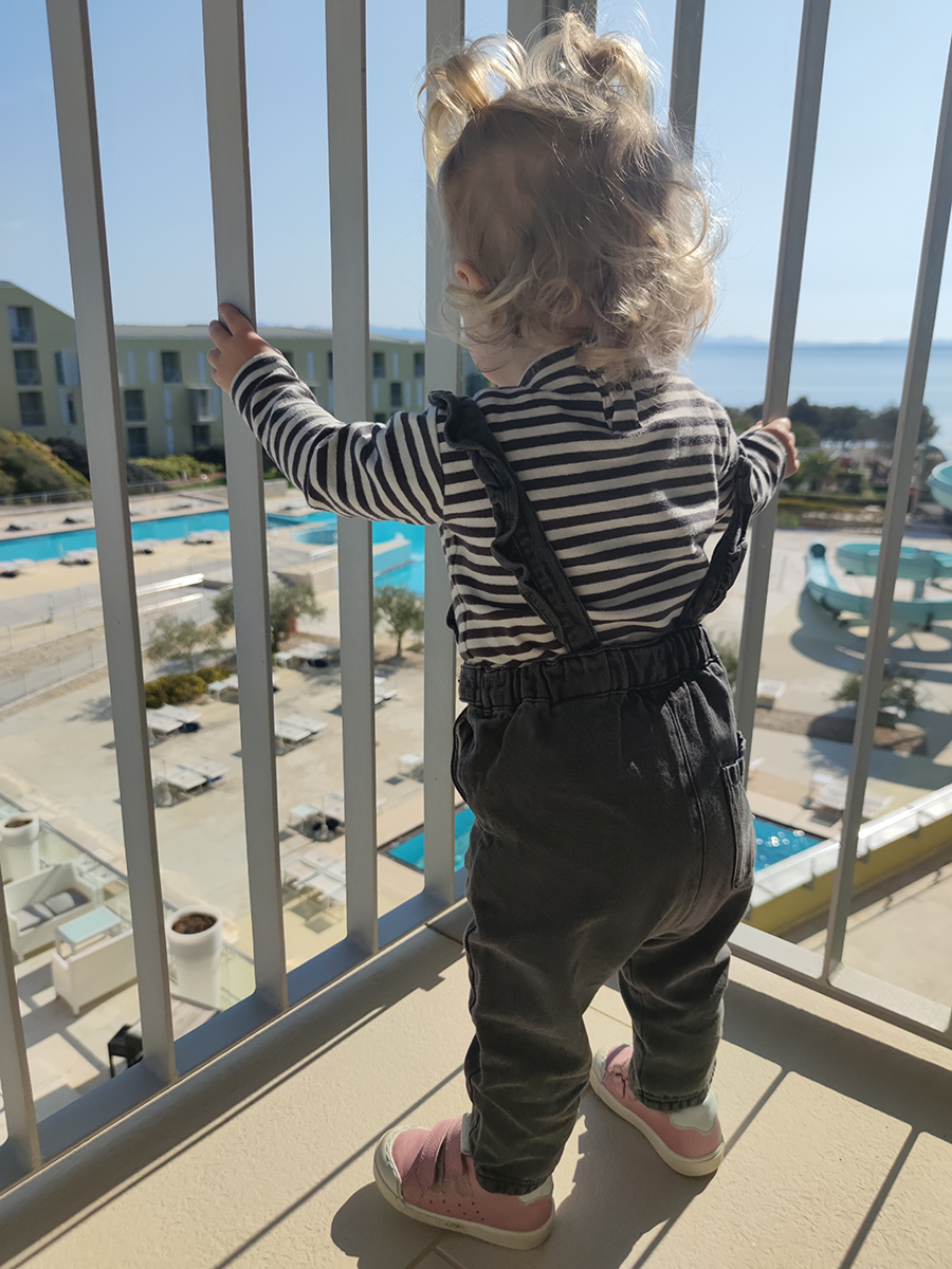 Destinacija su bile sunčane Petrčane i tamo smješteni family hotel Falkensteiner, koji vrlo visoko kotira kad u google ukucate „hoteli za djecu“. I ima zašto – u ta nas je 3 dana sve oborio s nogu, uključujući i Liv koja je nedavno prohodala.