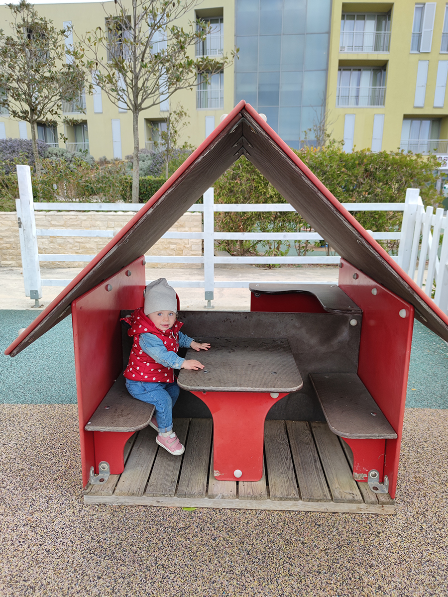 Unutar hotelskog kompleksa nalazi se veliki park s posebnim dijelovima za starije klince i s posebnim dijelom za bebe, što nas je oduševilo! Naime, naša Liv (kao i većina beba) jako voli parkove i sprave, no problem je u tome što je za mnoge od njih još uvijek premalena, pa ih zato ne može samostalno koristiti. I to se promijenilo u Falkensteineru! U dijelu parka namijenjenom za bebe smještene su sprave koje su baš prilagođene bebama koje su nedavno prohodale. To je za Liv značilo da se sama i bez naše pomoći mogla popeti na njih – ne mogu vam opisati to oduševljenje! Kao ni dramu kad je trebala sići nakon što je došlo vrijeme ručka…
