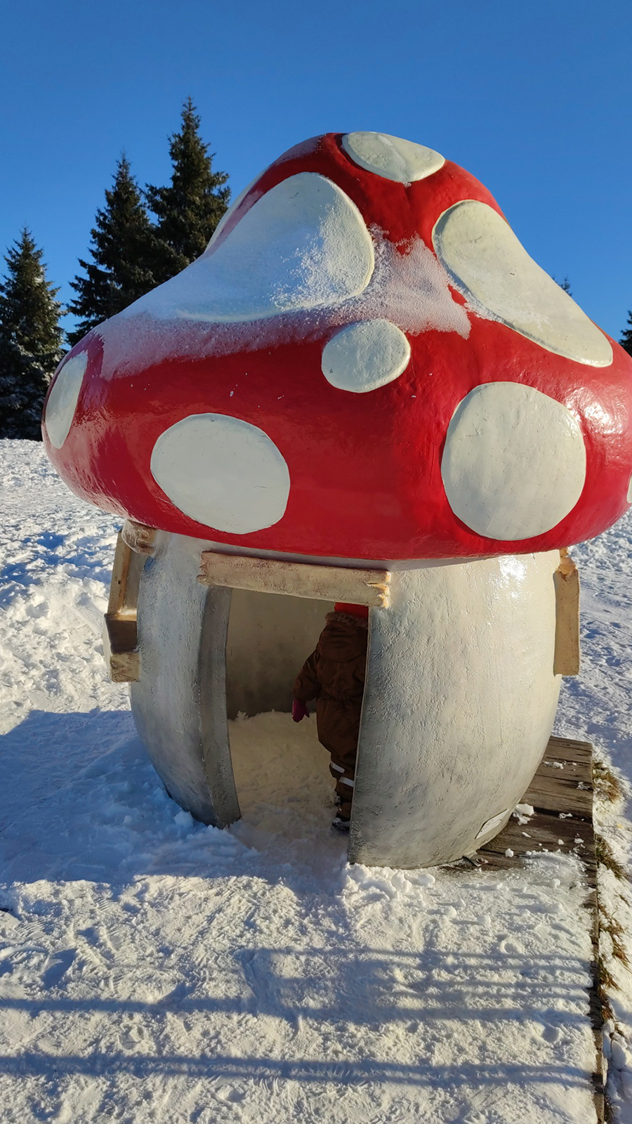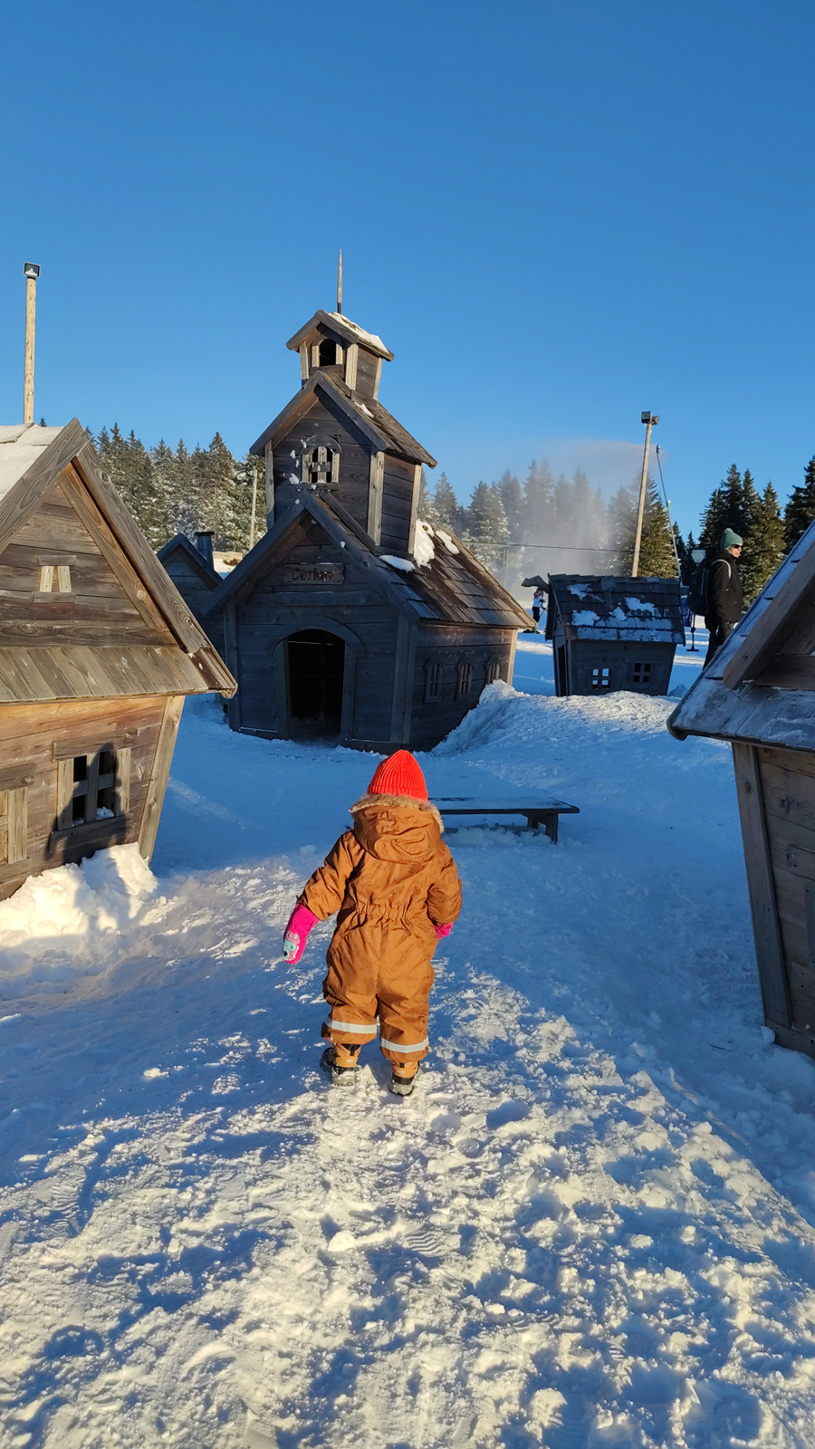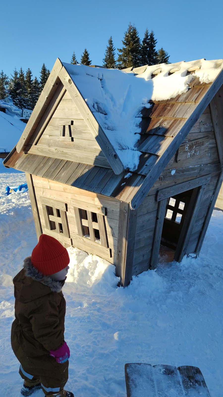 Naime, skijalište je smješteno u prekrasnoj prirodi i sve na njemu je prilagođeno klincima. Postoje staze različitih težina (i dužina), za iskusne skijaše i sasvim male klince, kao i brojni drugi genijalni sadržaji za djecu. Jedno od njih je malo tematsko selo navrh staze, s genijalnim kućicama unutar kojih se nalaze razne didaktičke igračke i ostali kreativni sadržaj kao što su zvona, memory, alatići za kuhanje…ima čak i presimpa crkvica s malenim zvonikom na kojega se klinci mogu popeti! Izvan kućica, klince čeka tobogan, mali dječji zipline i puno savršenih punkteva za sanjkanje. Znači, ako imate sanjkaše, na pravome ste mjestu – sanjkati se mogu doslovno do preksutra! Nije naodmet reći i da ima super restača i kućica s hranom i cugom – zato, ako ogladnite, ne brinite za klopu!
