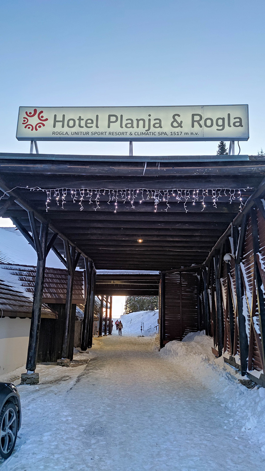 S obzirom da smo se na Roglu uputili baš pred dugi vikend, bili smo spremni na ogromne gužve koje nas i jesu i nisu dočekale na odredištu. Kažem jesu, jer automobila je zaista bilo mnogo, no s druge strane nije nam se činilo „gužvovito“ jer se sve to more ljudi na skijalištu nekako razvodnilo po prostoru i imali smo dojam da nismo „sardine“, što je svakako bio dobar start za nas! Smještaj smo uzeli u hotelu Rogla koji se nalazi na samom skijalištu kako bismo bili što bliže stazi i ostalim snježnim aktivnostima koje smo jedva čekali. Unutar hotelskog smještaja postoji i polupansion koji je zapravo i jedino moguće uzeti bez dodatne nadoplate (ako želite uzeti i ručak u hotelu, bit će potrebna nadoplata). Hrana je korektna i klasična – pohanci, bolonjez i slične relativno brze i zasitne stvari koje će vas fino okrijepiti prije i poslije staze, no ne očekujte neki gurmanski doživljaj – već samo pun i siguran želudac!