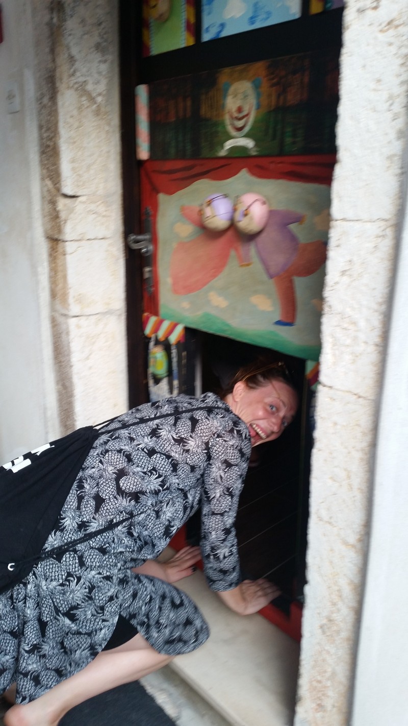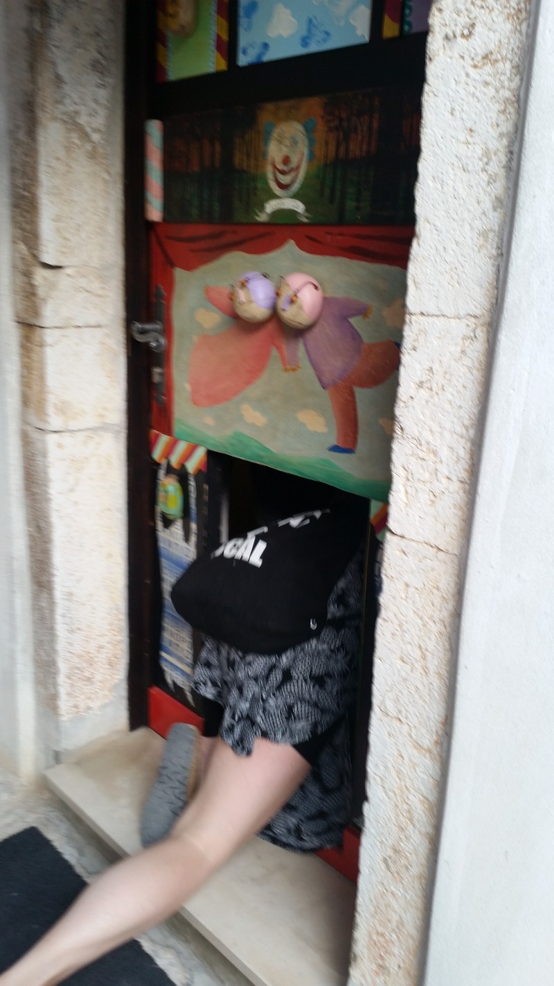 Mislite da je Teatar Oz poseban samo po tome što je najmanje kazalište? E, pa nije samo zbog toga! Uz pregenijalne predstave koje nude, kako bi ušli u prostor Teatra, nakon što pokucate, otvori vam se mali gornji prozorčić na vratima. Kada domaćin dobro pogleda tko je ispred i odobri ulazak, začuje se truba, te se otvaraju donja mala vratašca kroz koje ulaze i veliki i mali :) Odvalile smo!
