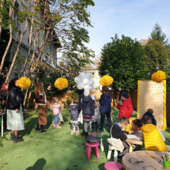 Jako smo sretni što se među poklonima našlo i sunce pa smo imali pravi garden party u našem vrtu! Naša čarobna Maja ispekla je brdo najfinijih palačinki koje smo zajedno smazali za čas! A mi ne bismo bili mi da sve skupa nismo začinili dobrom pričom. Zato nam je za ovu svečanu priliku na metli doletjela prava (ali dobra) vještica koja se uhvatila u koštac s jednom bundevom!