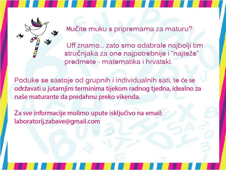 Laboratorij zabave koristit će navedene informacije samo kako bi Vas obavještavao o našem radu, novostima i tekućim događanjima za djecu i odrasle. Newsletter možete primati putem: