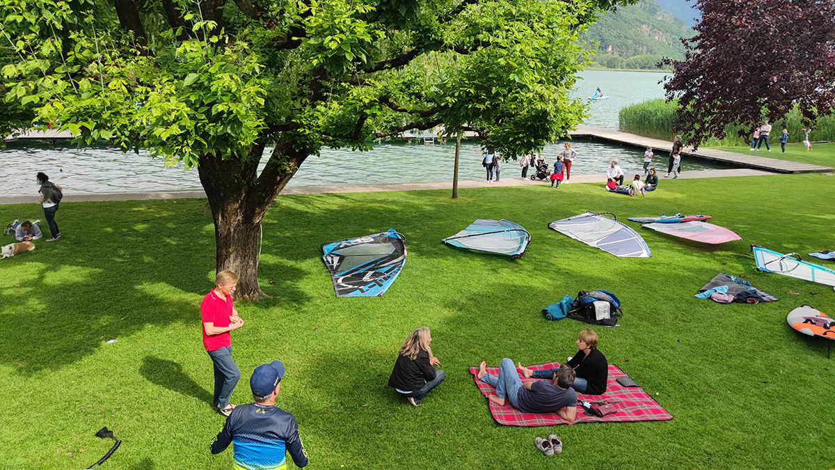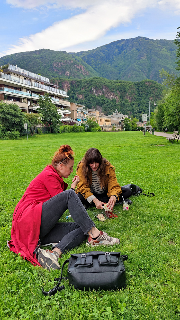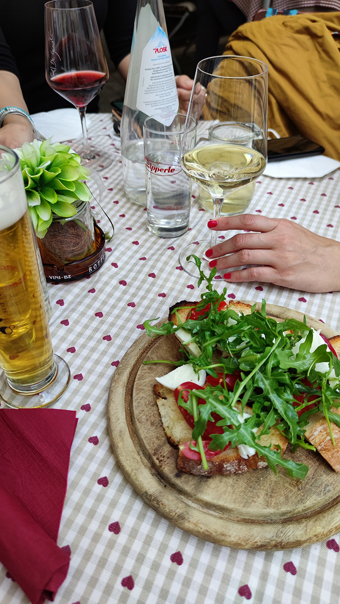 Uslijedilo je slobodno vrijeme u kojem smo odlučile otkriti kako se zabavljaju stanovnici Bolzana i kako najradije provode subote! Otkrile smo da ih, baš kao i naše ljude u Hrvatskoj (ljudi su ipak posvuda vrlo slični) možemo podijeliti u tri kategorije – sportaši, rekreativci i…pa, šminkeri. Za svakoga ponešto! Sportaši vole planinariti po Dolomitima, najčešće u društvu čitave obitelji koje su uglavnom vrlo sportski nastrojene. Baš kao i odrasli, i klinci vole planinariti, istraživati i provoditi vrijeme u prirodi. A kad to nije planina, onda je prekrasno jezero Lago di Caldaro koje se nalazi u gradu. Naravno, okruženo je planinama, a obala se sastoji od velikih livada na kojima klinci puštaju zmajeve i klopaju na piknicima. Ni mi ga nismo propustile. Dekica, rajčice i talijanski sir su kombinacija koju jednostavno morate iskušati u prirodi – s klincima ili bez njih! No, ako ipak niste „tip od trave“, znajte da oko jezera ima kafića i restorana koji unatoč pandemiji rade. Štoviše, zbog nedavno popuštenih mjera čak možete i sjediti u zatvorenom prostoru.