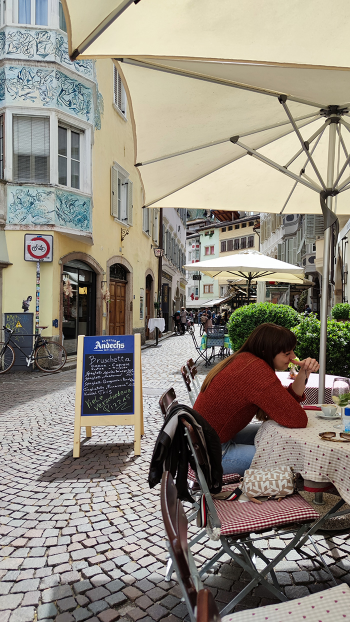 U istom vidiku kao i planine, smješten je Bolzano koji šarmantno spaja prirodu i grad – jedno od drugoga zapravo su neodvojivi, a skupa čine cjelinu koja se ne propušta! S guštom smo prošetale starom gradskom jezgrom te živopisnom, pomalo vintage tržnicom s talijanskim sirevima, začinima, povrćem i cvijećem. Baš kao i na svakoj tržnici, atmosfera u zraku je vesela, dinamična i živopisna. I u doba pandemije, ljudi su raspoloženi i gradić živi – no, maske na otvorenom obavezne su za sve. Imajte to na umu ako se zaputite!