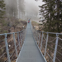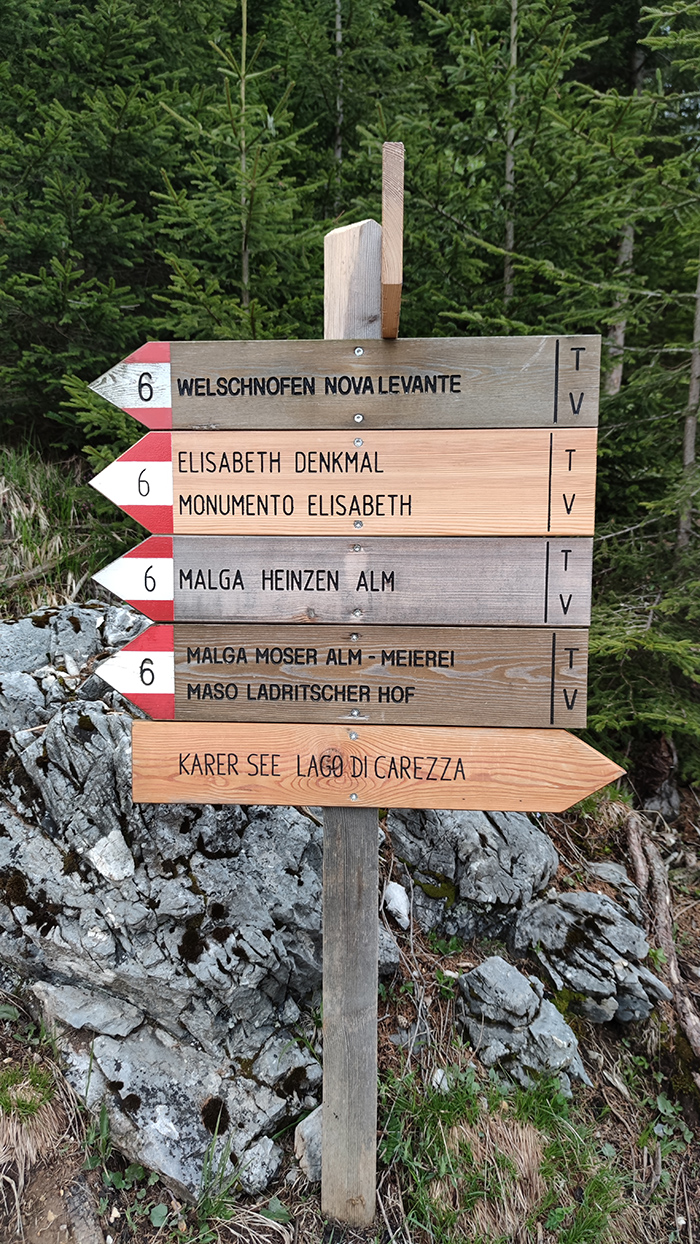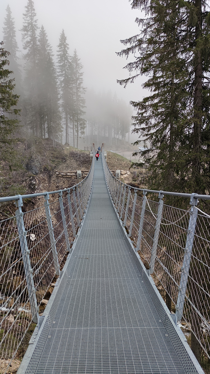 Nakon što smo u subotu istražile grad, u nedjelju je bilo vrijeme za okolicu! Po preporuci lokalaca, zaputile smo se na jezero Lago di Carezza / Karersee, poznato po super panorami na Dolomite. Nažalost, baš u to vrijeme odlučilo nas je zeznuti upravo to – vrijeme – pa spustilo oblake kroz koje nismo vidjele slavni landscape. No, odličan nas provod nije zaobišao. Prošetale smo prirodom i čak hrabro prešle jedan ljuljajući i pokojem oku jeziv most – no, ne sumnjamo da bi klincima bio prava špica!