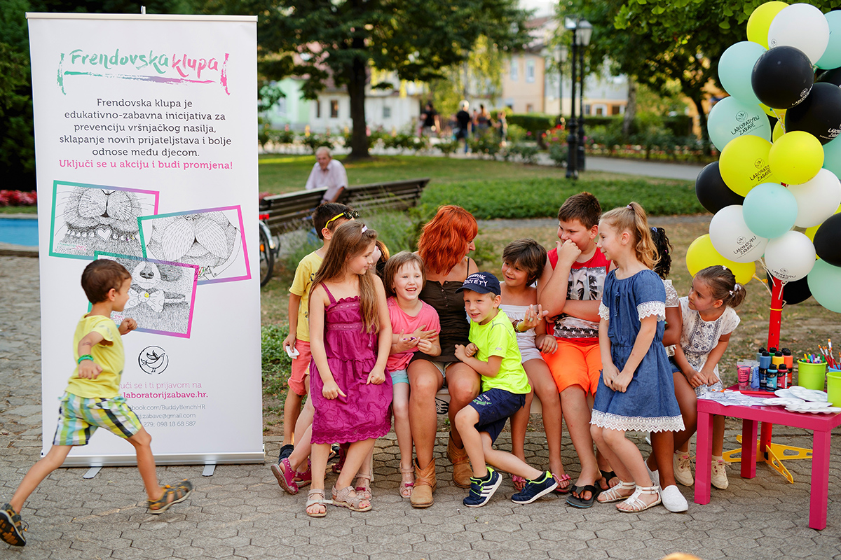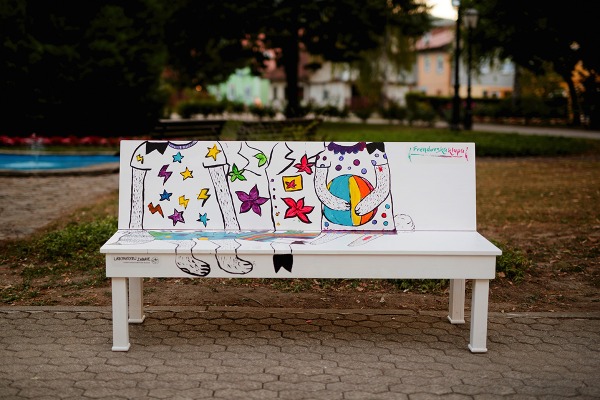 Za one koji ne znaju, a put ih nanese u dom slasnih kremšnita, naljepših fašnika i gorskih legendi: u suradnji s gradom Samoborom, njegovom Turističkom zajednicom i, naravno i nezaobilazno, malim i velikim Samoborcima, uredili smo, oslikali i postavili prvu Frendovsku klupu u gradu. Na nju je dobrodošao svaki klinac željan novog ili starog društva, istraživanja, druženja, smijanja: svih onih neprocjenivih i nezamjenjivih stvari koje čine prijateljstvo, djetinjstvo, i naposljetku: život.
