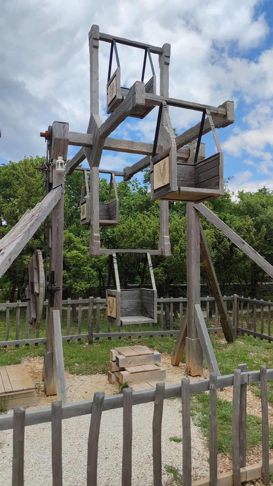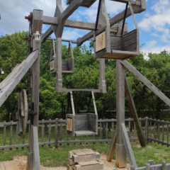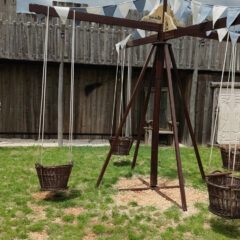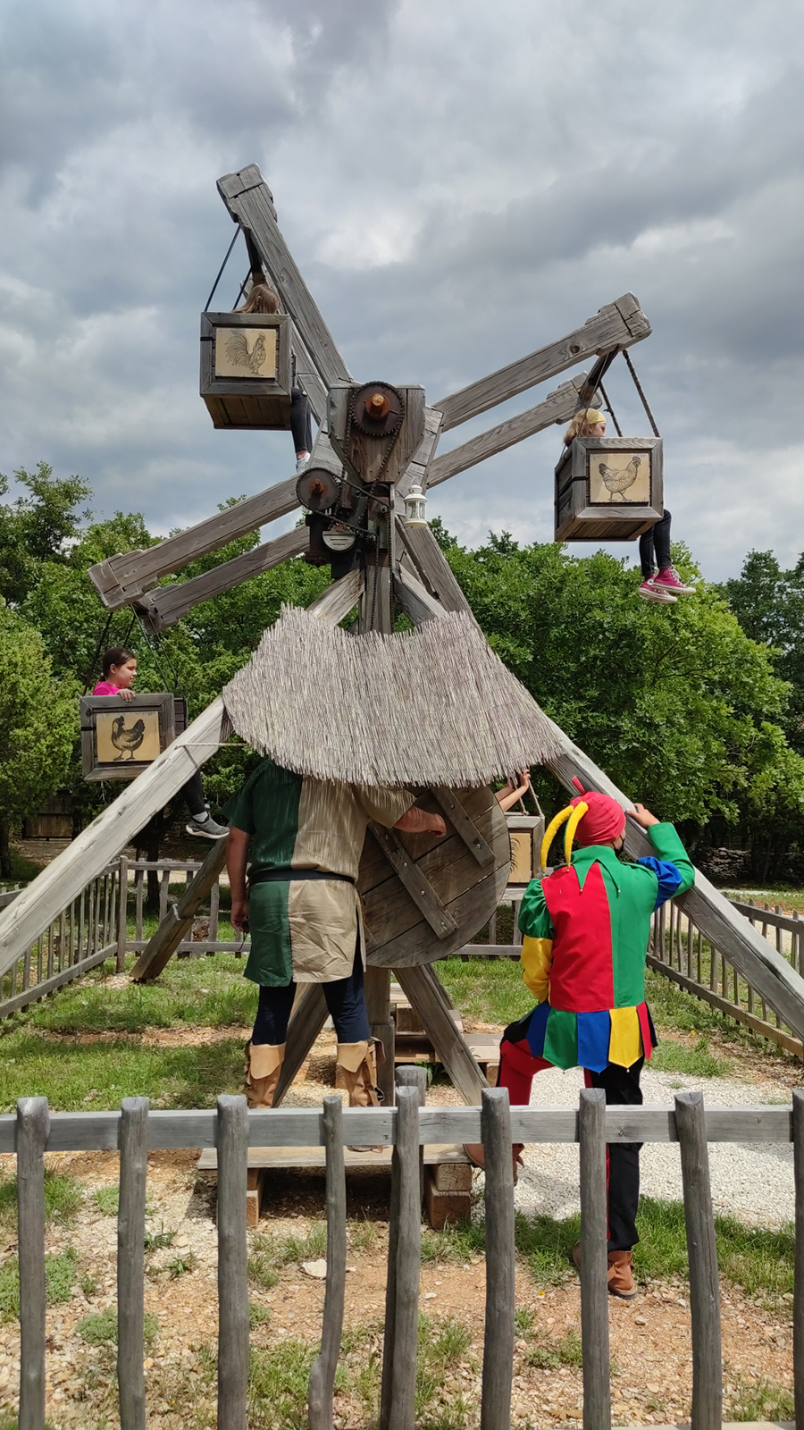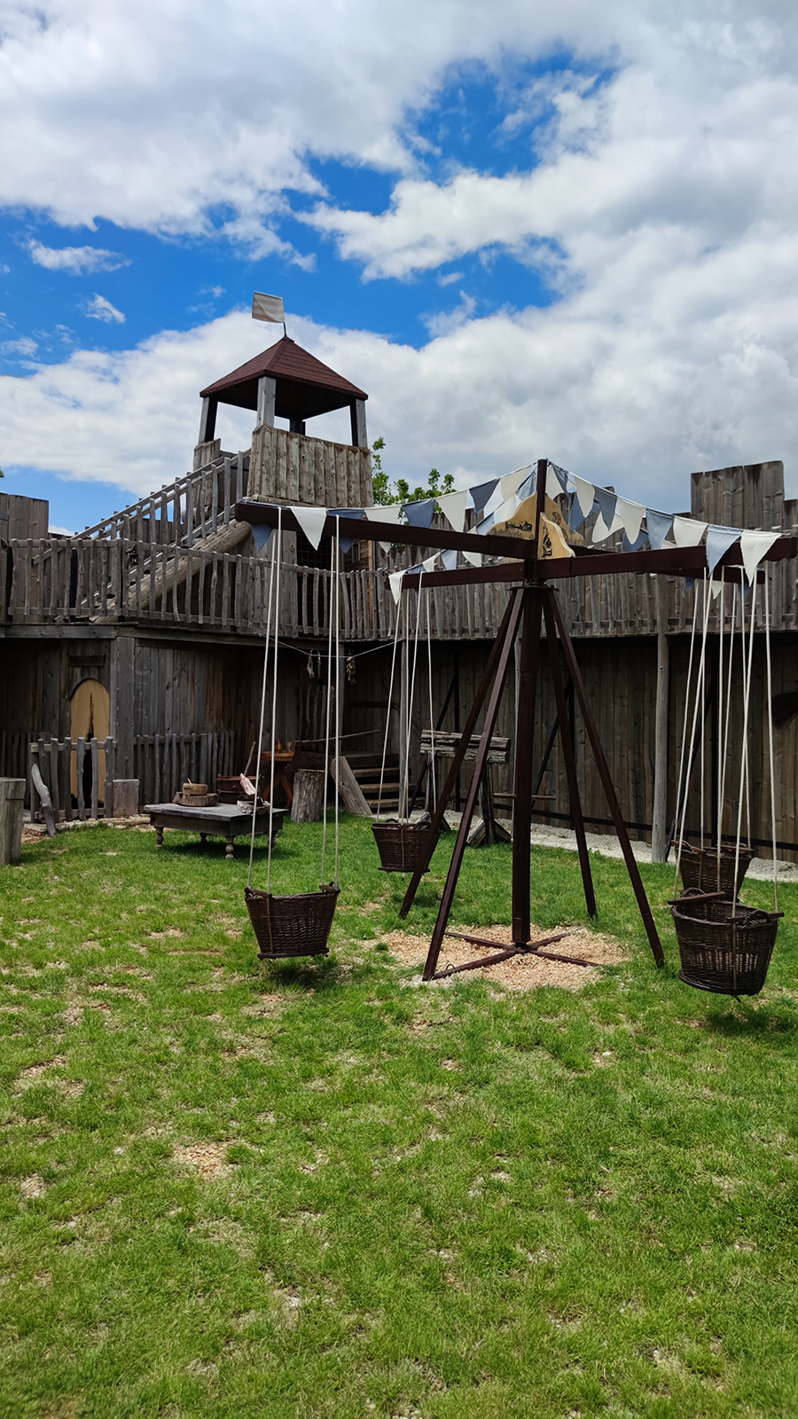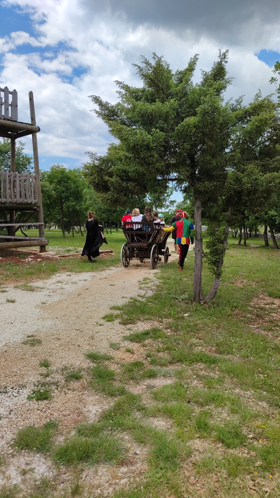 To nam je bio prvi put da posjećujemo Srednjovjekovni park Sanc. Michael i osim što smo vidjeli fotke na Internetu, nismo imali pojma što nas zapravo očekuje. Priznajem da sam zamišljala nešto modernije, odnosno suvremeniji prikaz Srednjeg vijeka za isto tako suvremene klince – no, ono što sam vidjela oborilo me s nogu! Jer, sve je totalno autentično i baš kao u pravom Srednjem vijeku, bez modernih replika i dodatnih (nesrednjovjekovnih sadržaja). To u praksi znači – autentični old school vrtuljci s košarama na ručno pokretanje i ostale sprave za igranje na srednjovjekovni način. Ima sadržaja za klince svih dobi, no Liv je ipak morala propustiti najveći vrtuljak jer je, baš zbog svoje autentičnosti, ipak namijenjen starijim klincima koji se mogu sami držati. Još jednom kažem, on se vrti ručno – kao kakav stari, tajanstveni mlin. A tek je jedna od stanica na putu koji slijedi!