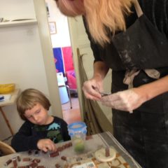 Igramo se s glinom, prljamo ruke, oblikujemo, pečemo, bojamo, glaziramo… Razvijamo finu i grubu motoriku, otpuštamo stres, opuštamo se i otkrivamo vlastitu kreativnost (na koju smo možda već pomalo i zaboravili!). Mali postaju veliki, a veliki (bar na kratko) opet postaju klinci! Sve uz ugodne razgovore, dobru muziku u pozadini i nova poznanstva. Imamo puno posla i uživamo u svakom trenutku! S velikim veseljem vas čekamo i garantiramo dobar provod i odlazak kući nasmijanih lica. I naravno, sve što se izradi na radionici nosite sa sobom kao trajnu uspomenu na ovo lijepo druženje!