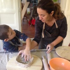 Bojanje vaših umjetničkih radova s engobama (prije pečenja i glaziranja) možete dovršiti na sljedećoj radionici u subotom ili na našim redovnim satima keramike, četvrtkom od 19-21h. Cijena radionice bojanja s engobama iznosi po obitelji (jedan roditelj + dijete) iznosi 120kn, za drugo dijete + 30kn.