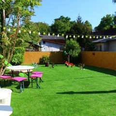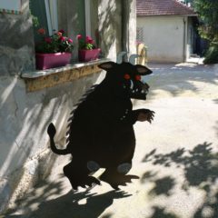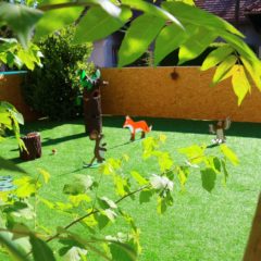 Naravno, u planu je bilo da se malo pravimo važne s našim novim vrtom pa smo nakon predstave, svi poiskakali kroz prozor, na tobogan, ravno u vrt, gdje su ih dočekale sve životinje iz Gruffalo priče :)
