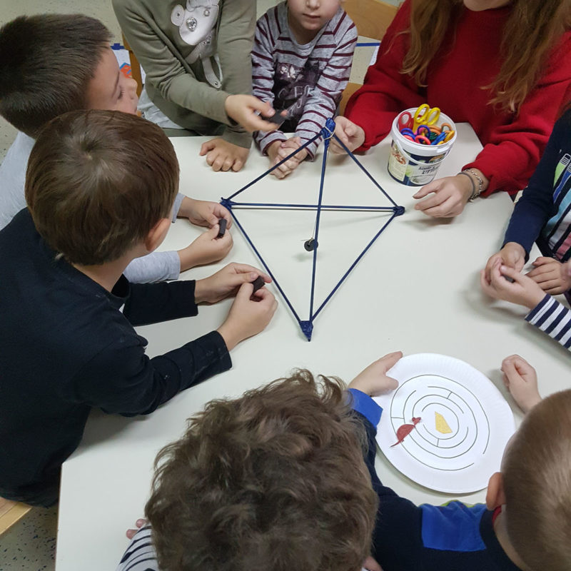 A kako se to radi? Kroz istraživačke aktivnosti, interaktivnu igru i pametnu zabavu! Ovom vrijednom i kreativnom projektu rado smo se pridružili uz naš program „Ubitačna matka i fizika“, u kojem na zabavan i pustolovan način otkrivamo tajne, čuda i zakone matematike i fizike. Na čak pet dinamičnih i otkačenih punkteva klinci su istražili geo ploče, magnetska polja i njihala, računali pomoći abakusa, zbrajali kriške pizze i izradili svatko svoj personalizirani labirint: smijeha nije nedostajalo, a odlična se zabava množila na kub!